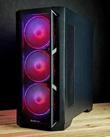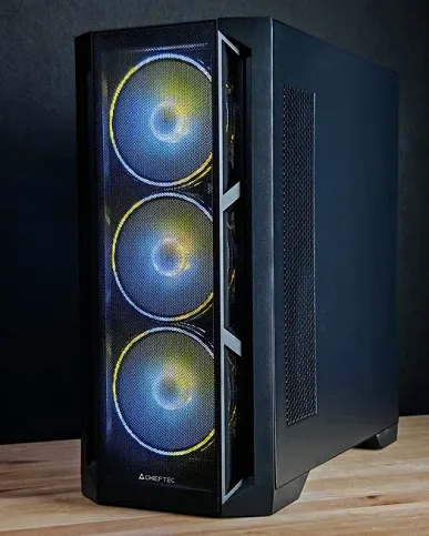 Корпус Chieftec Apex Lumo в достаточной мере универсален — он допускает установку системных плат размером вплоть до E-ATX (разве что без поддержки Back Connect) и широкого спектра прочих комплектующих: ограничения на длину блоков питания и видеокарт скорее теоретические, к тому же предусмотрены разные варианты их установки — горизонтальная или вертикальная для видеокарт, вентилятором вверх или вниз для БП. При этом цену корпуса чрезмерно высокой не назовешь, особенно с учетом наличия четырех штатных 140-миллиметровых вентиляторов с ARGB-подсветкой и соответствующего контроллера, управление которым выведено на отдельную кнопку.