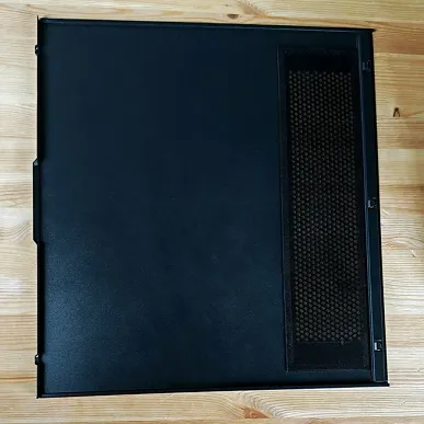 Внутри ближе к лицевой стороне корпуса параллельно боковой поверхности расположена решетка для установки вентиляторов или радиатора СЖО.