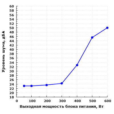 Дальнейшее повышение мощности нагрузки приводит к заметному увеличению уровня шума блока питания.