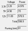 | Нагрузка через разъемы | 12VDC, Вт | 5VDC, Вт | 3.3VDC, Вт | Общая мощность, Вт |