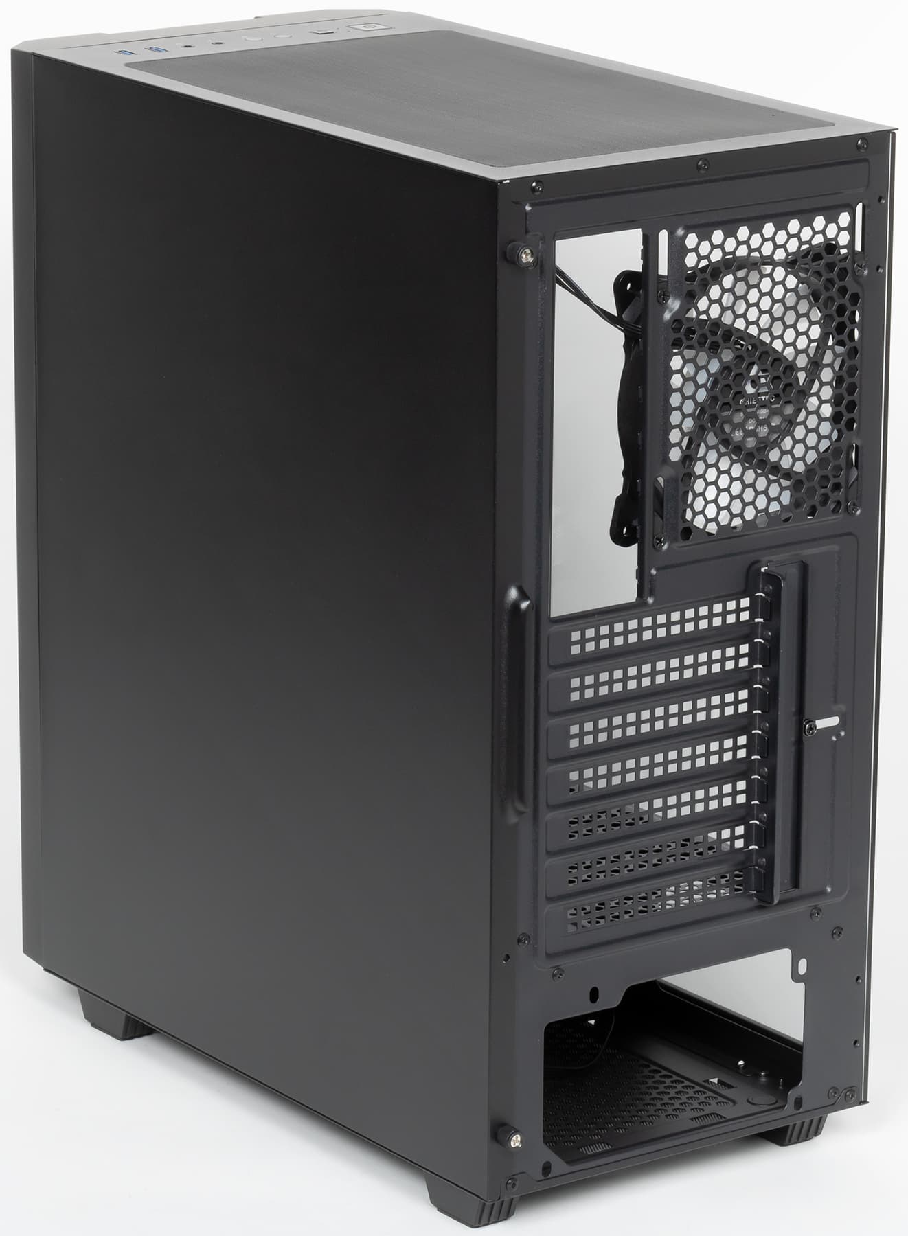 В корпусе предусмотрена возможность установки вентиляторов типоразмера 120 и 140 мм. Посадочные места для них имеются спереди, сверху и сзади.