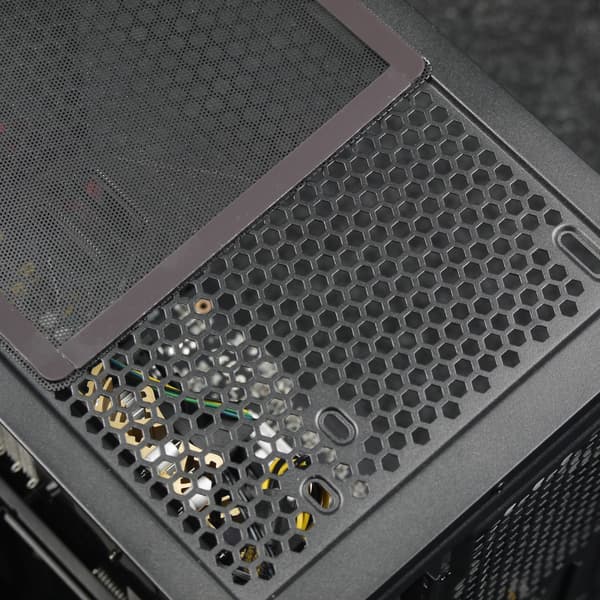 Фильтр для верхней стенки удобнее всего снимается и ставится на место благодаря магнитной окантовке, однако выполнен он из достаточно крупной пластиковой сетки, а потому бо́льшая часть мелких пылинок просочится сквозь него в корпус. С другой стороны, он отлично поможет от падения внутрь корпуса монет, ключей, каких-либо мелких предметов, да и от части пыли тоже спасет.
