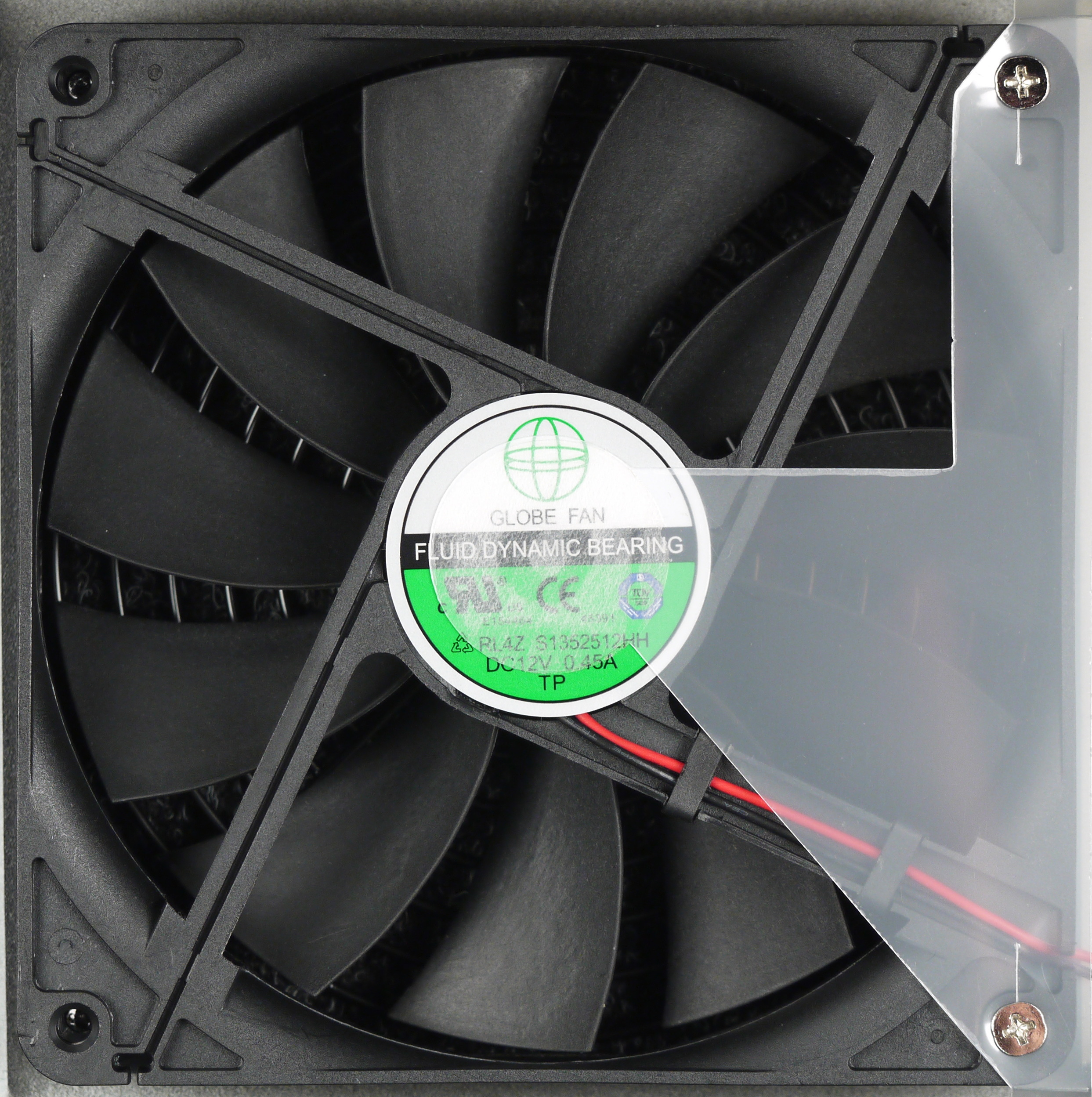 В блоке питания установлен вентилятор RL4Z S1352512HH типоразмера 135 мм (расстояние по центрам крепежных отверстий — 120 мм), имеющий, по данным производителя, максимальную скорость вращения 1800 оборотов в минуту. Вентилятор основан на гидродинамическом подшипнике и произведен компанией Globe Fan. Подключение вентилятора — разъемное двухпроводное.