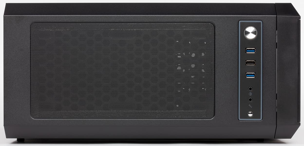 Внешние разъемы корпуса подключаются экранированными кабелями с монолитными коннекторами, для аудио предусмотрено только HD Audio, а порты USB 3.0 подключаются к внутренним разъемам системной платы.