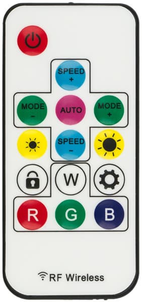 С помощью пульта для подсветки можно выбирать один из 20 динамических режимов с использованием 7 различных цветов, включая белый, а также 9 статических режимов с выбором постоянного свечения одного из семи используемых цветов либо сочетаний трех цветов RGB или всех семи цветов. Для динамических схем подсветки можно регулировать скорость изменения световых узоров, а яркость не регулируется — можно лишь выключить подсветку полностью.
