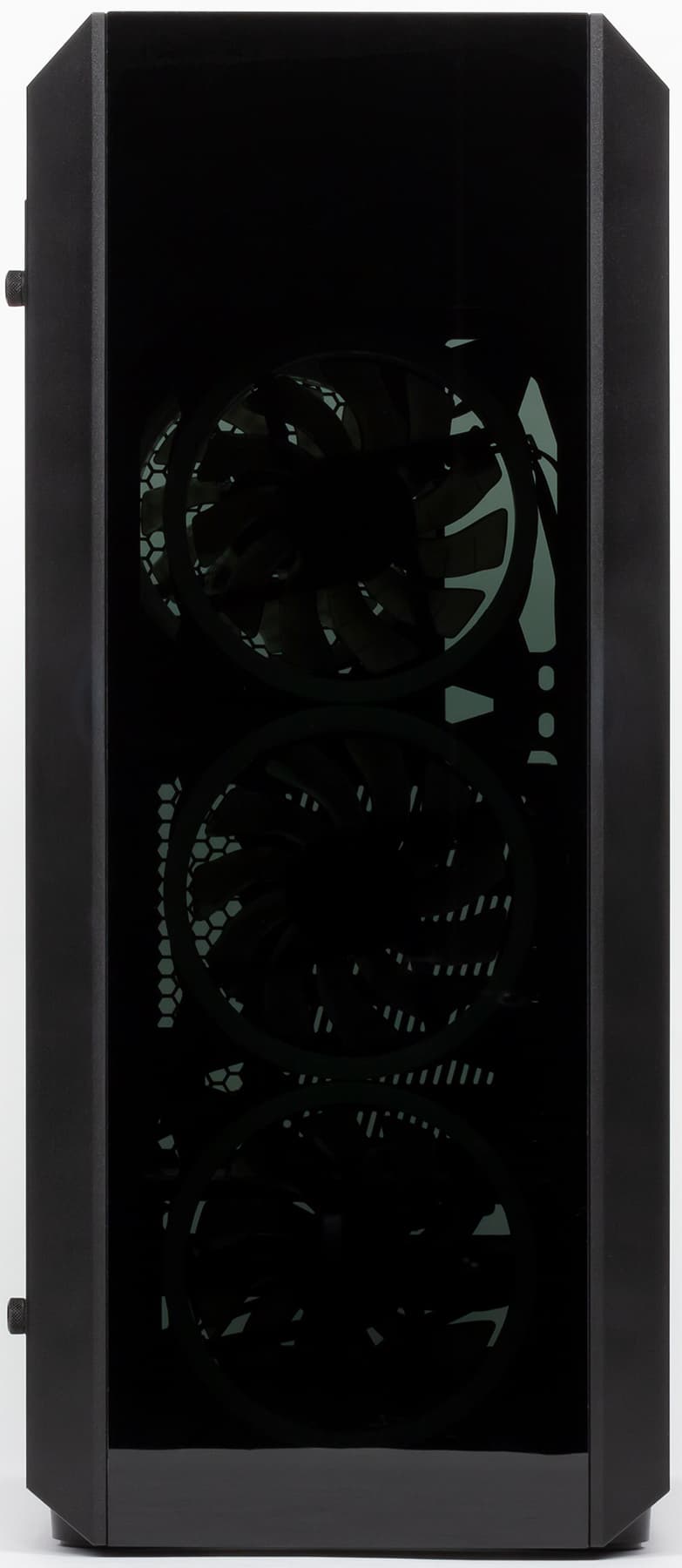 Воздух к передним вентиляторам поступает через боковые прорези в объемной пластиковой рамке лицевой панели. Какого-то фильтра для них не предусмотрено.