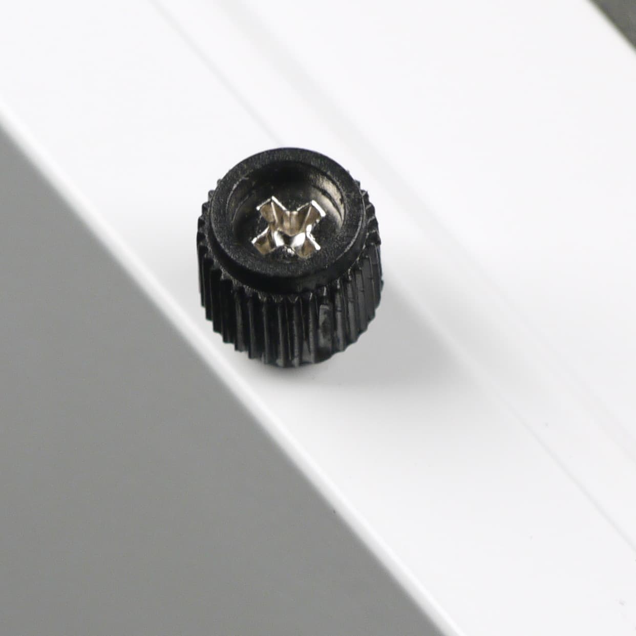 Фиксация осуществляется двумя винтами с накатной головкой. Точнее, используются винты с напрессованной пластиковой накладкой — это такой бюджетный вариант исполнения винта с накатной головкой.