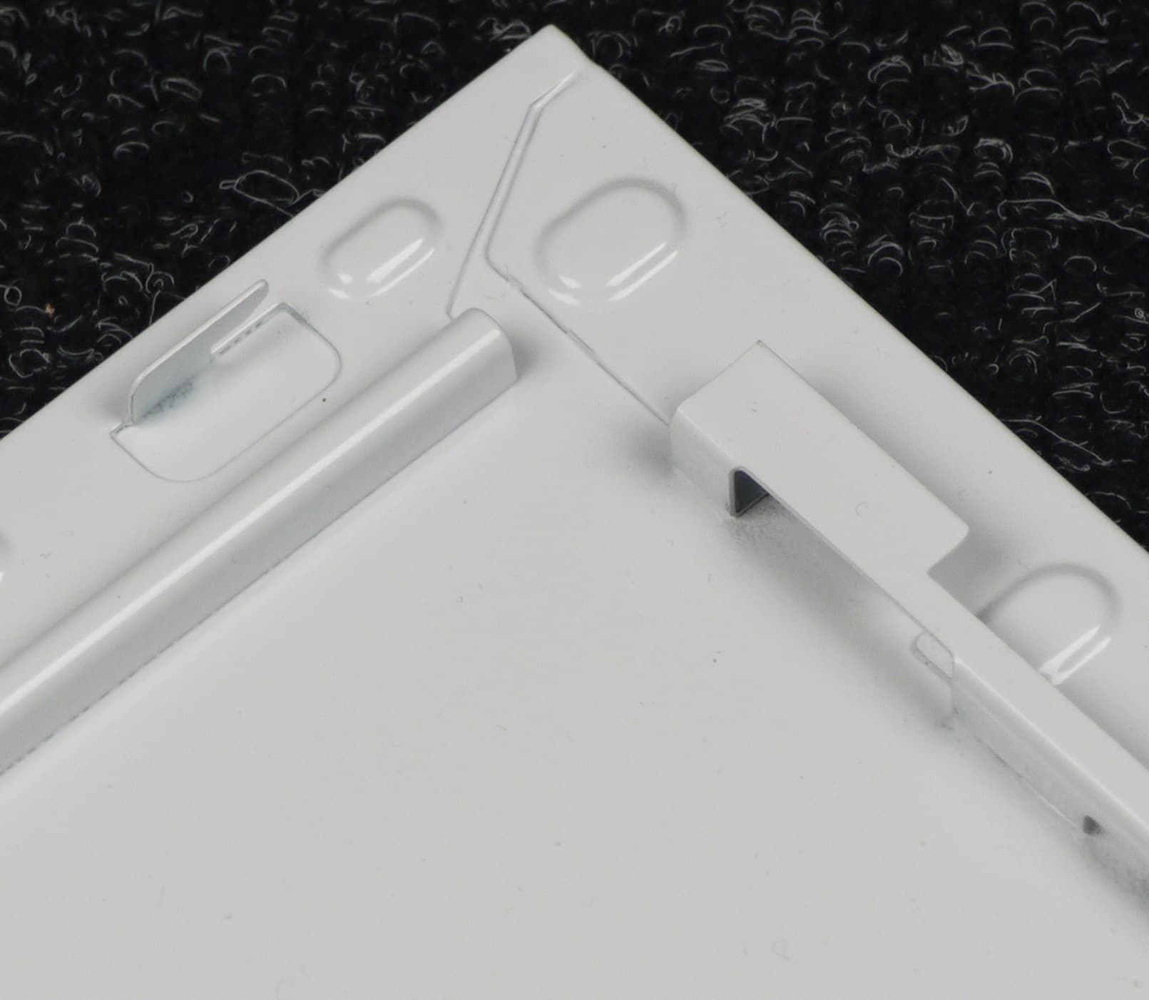 Система крепления у обеих стенок — стандартная пазогребенная. В передней части имеется зацеп.