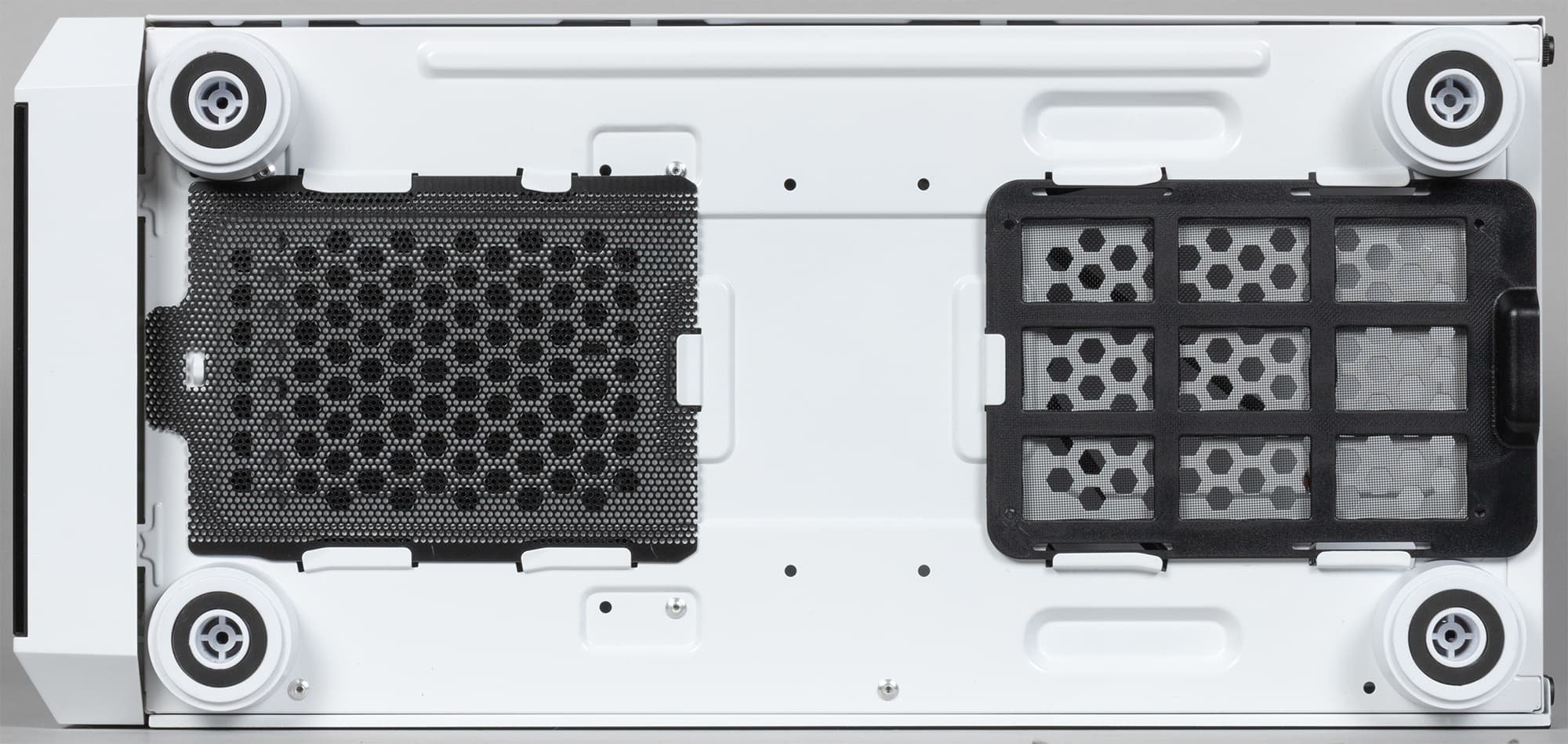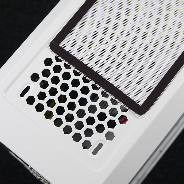 Фильтр для верхней стенки удобнее всего снимается и ставится на место благодаря магнитной окантовке, однако выполнен он из достаточно крупной пластиковой сетки, а потому большая часть мелких пылинок просочится сквозь него в корпус. С другой стороны, он отлично поможет от падения внутрь корпуса монет, ключей, каких-либо мелких предметов, да и от части пыли тоже спасет.