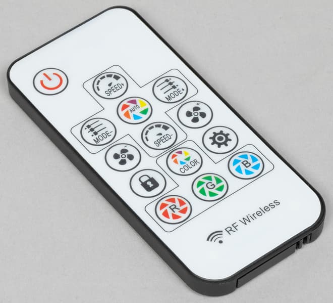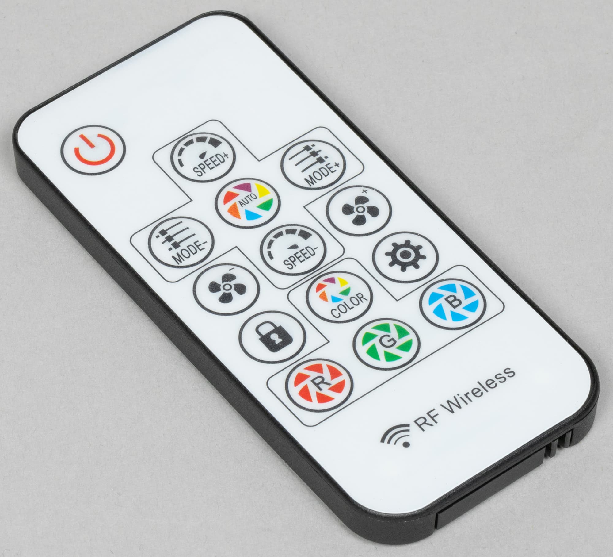 Пульт позволяет не только управлять подсветкой, но и регулировать скорость вращения вентиляторов, выбирая один из трех фиксированных режимов работы. Контроллер также поддерживает управление через Asus Aura Sync и аналогичные решения. Питание системы подсветки осуществляется через разъем SATA Power.