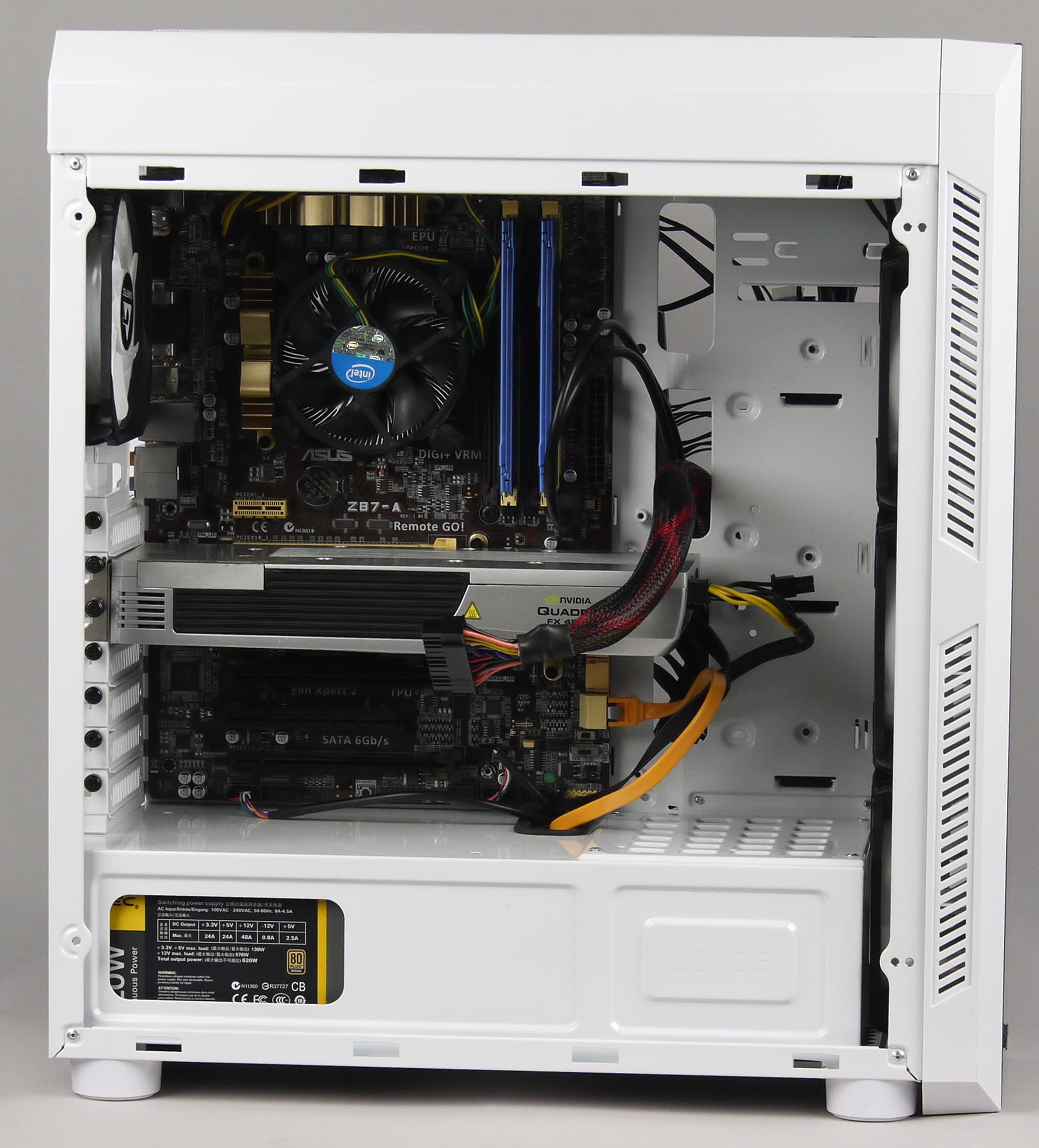 Порядок сборки ПК в данном корпусе особого значения не имеет, так как компоненты разнесены и не мешают друг другу, но лучше начать с установки блока питания и прокладки проводов.