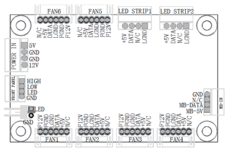 Все вентиляторы имеют по одному 6-контактному разъему и подключаются только к штатному контроллеру, который позволяет выбрать один из трех режимов их работы при помощи пульта дистанционного управления.