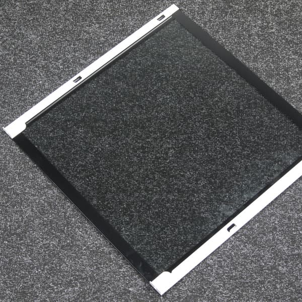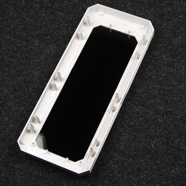Передняя панель выполнена из пластика со вставкой из стекла спереди и с вентиляционными отверстиями по бокам. Пластик окрашен в массе, но лицевая часть, если судить по разному тону внешнего и внутреннего покрытия, также окрашена и снаружи, поверхность у нее матовая. Крепление передней панели — на стандартных распорных элементах, изнутри ничего отгибать не нужно.