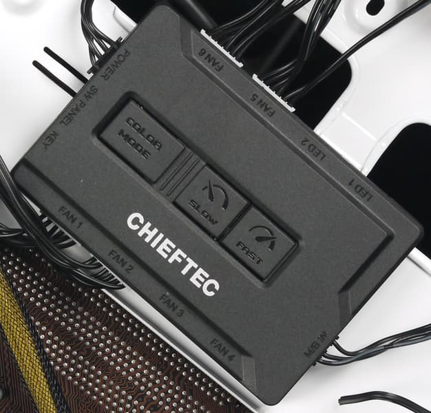 Chieftec Scorpion 3 вполне может оказаться востребованным для типичных домашних систем как благодаря дизайну со стеклянными панелями с двух сторон, так и из-за неплохой оснащенности: четыре ARGB-вентилятора уже есть в комплекте. Многофункциональный контроллер управляет не только подсветкой, но и скоростью вращения вентиляторов, причем полноценное управление осуществляется с радиопульта.