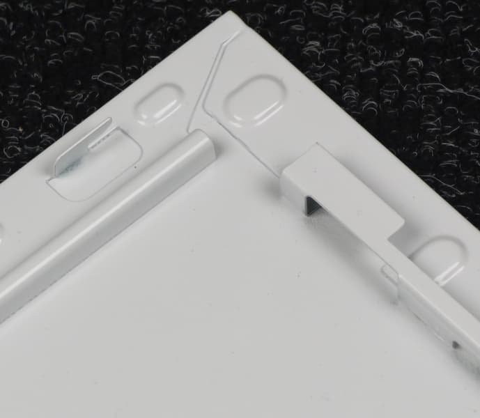 Фильтр под отсеком для накопителей выполнен из крупноячеистой сетки, которая представляет собой проштампованный лист пластика с круглыми отверстиями. Рамки он не имеет. И если снять его на ощупь еще как-то можно, то поставить обратно уже затруднительно. Впрочем, для его демонтажа в любом случае нужно снимать переднюю панель.