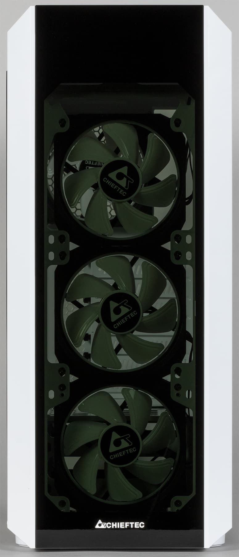 В корпусе предусмотрена возможность установки вентиляторов типоразмера 120 мм, посадочные места для них имеются спереди, сверху и сзади. Предустановлены 4 вентилятора: 3 спереди и 1 сзади.