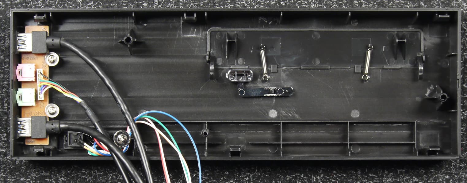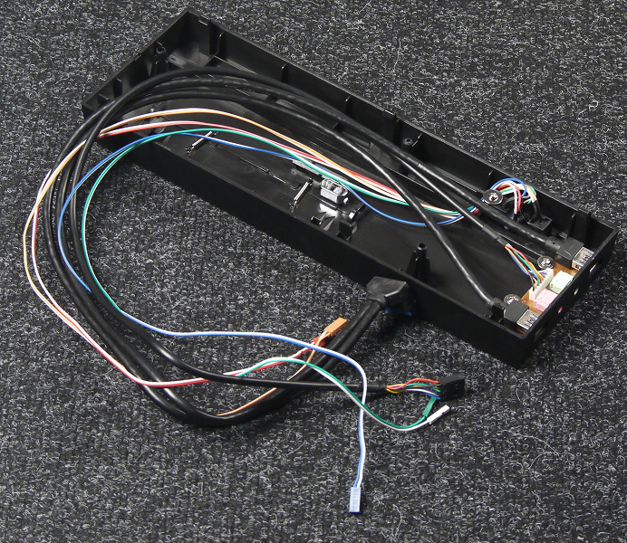 Кнопки и разъемы передней панели подключаются вполне стандартно: USB и аудио — монолитными многоконтактными разъемами, все остальное — одноконтактными и двухконтактными разъемами.