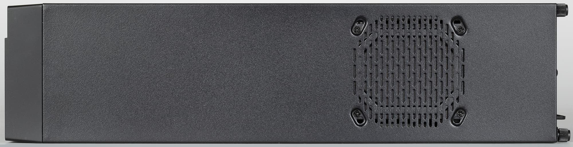На узких боковых стенках имеются посадочные места для установки вентиляторов: по одному вентилятору типоразмера 80 мм с каждой стороны. С большой вероятностью их установка почти не будет влиять на температуру основных компонентов. То есть в случае использования бюджетной платформы с невысоким тепловыделением смысла в этом нет.