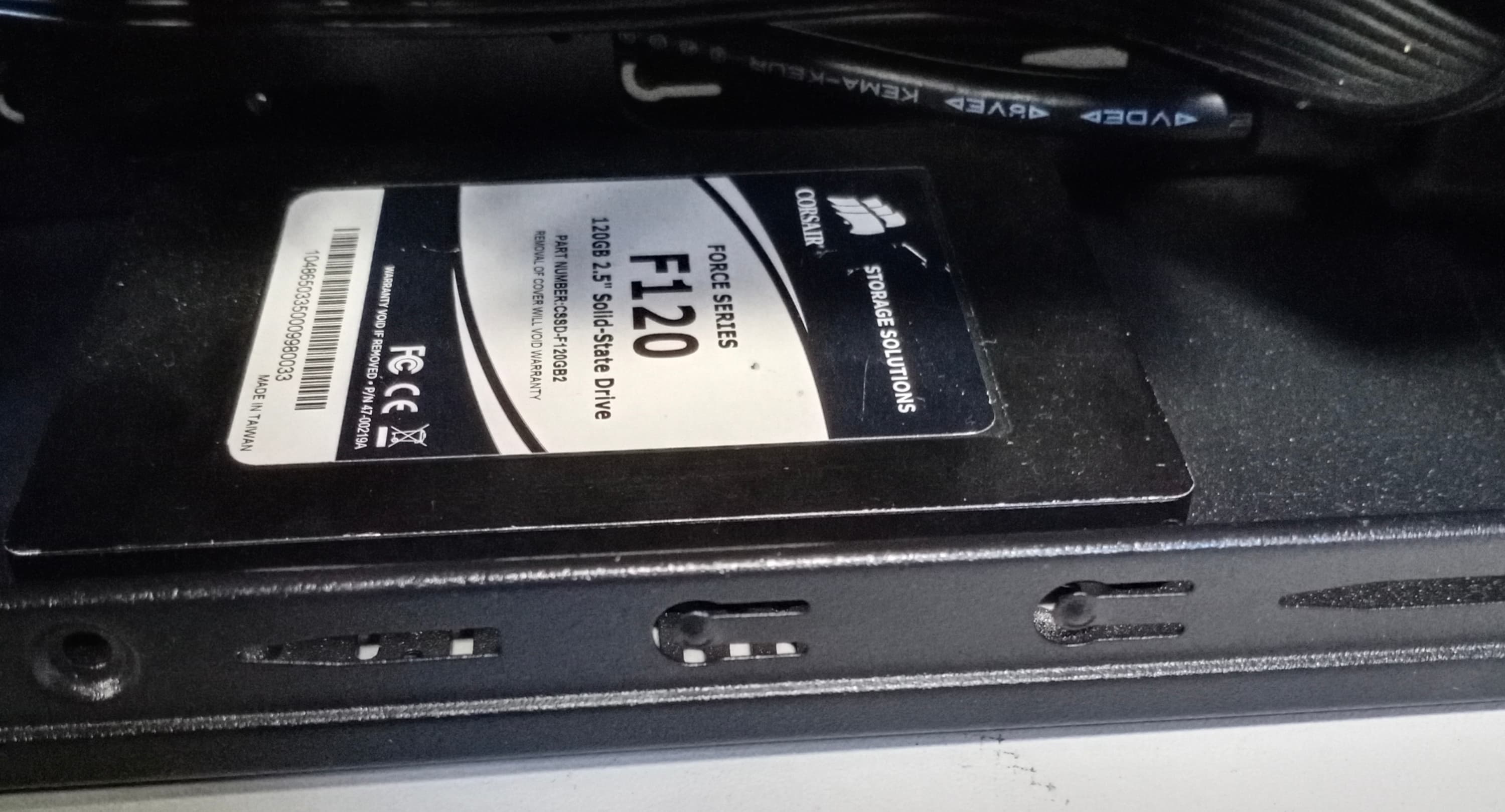 Есть отдельное посадочное место для диска 3,5″ — стационарное, под отсеком для оптического привода на дне корпуса, где расположены четыре выштамповки, через которые вкручиваются винты в дно накопителя.