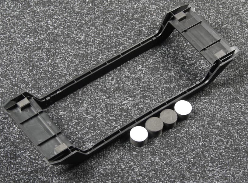 Для вертикальной установки корпус снабжен подставкой, а для горизонтальной в комплект входят четыре цилиндра с самоклеящийся площадкой с одной стороны. Цилиндры и накладки на подставки выполнены из плотного вспененного материала — это не резина, но в случае бюджетных корпусов подобный материал встречается постоянно.