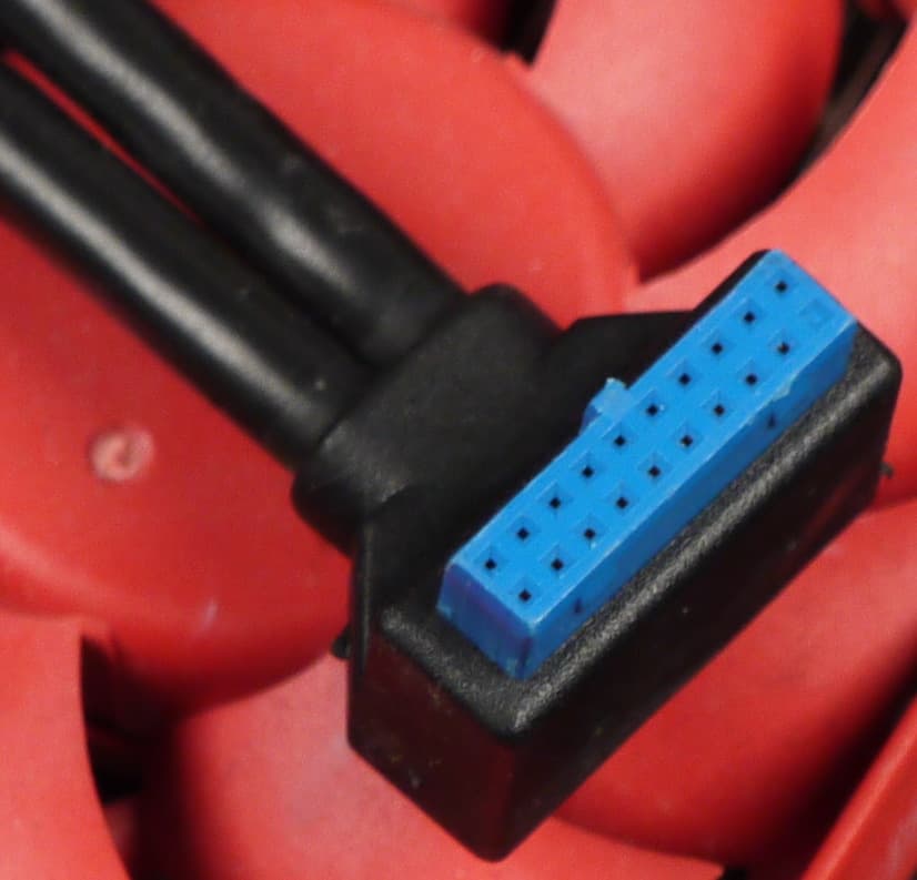 Вилка разъема USB 3.0 выполнена угловой, что можно считать откровенным недочетом, так как расположение и ориентация розетки данного разъема на системных платах могут быть любыми. Во многих случаях подключение такой вилки в тесном пространстве корпуса будет невозможно, поскольку потребует выполнить поворот кабеля на 90 градусов с очень малым радиусом. В итоге это приведет к необходимости покупать удлинитель и пользоваться задними портами на системной плате или же покупать контроллер для слота PCI-E. В общем, идея хорошая, а вот реализация не самая удачная.