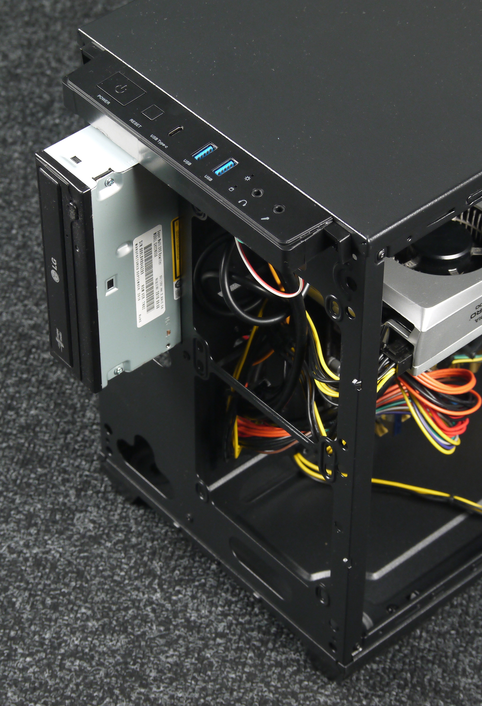 Порядок сборки ПК в данном корпусе особого значения не имеет, так как компоненты разнесены и не мешают друг другу, но лучше начать с установки блока питания и прокладки проводов.