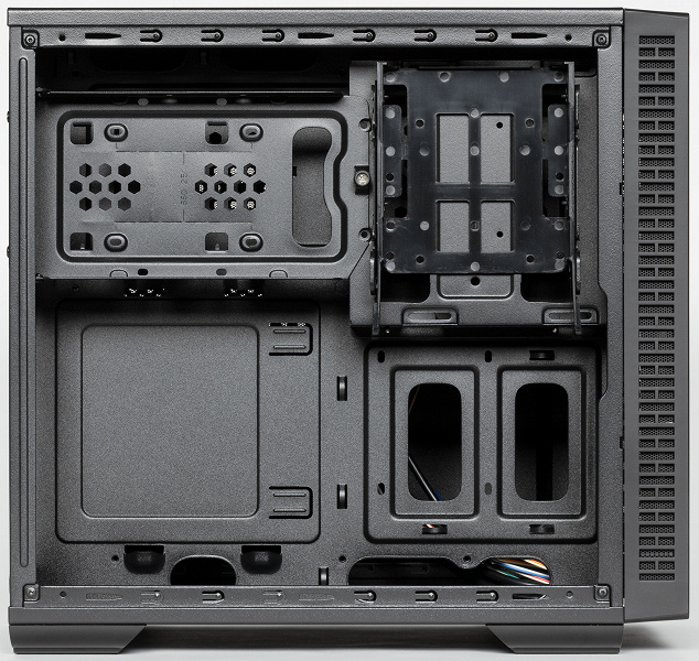 При размещении посадочных мест для накопителей разработчики корпуса тоже проявили изобретательность. В перечне технических характеристик сообщается о возможности установить три накопителя, но на самом деле штатных посадочных мест несколько больше.