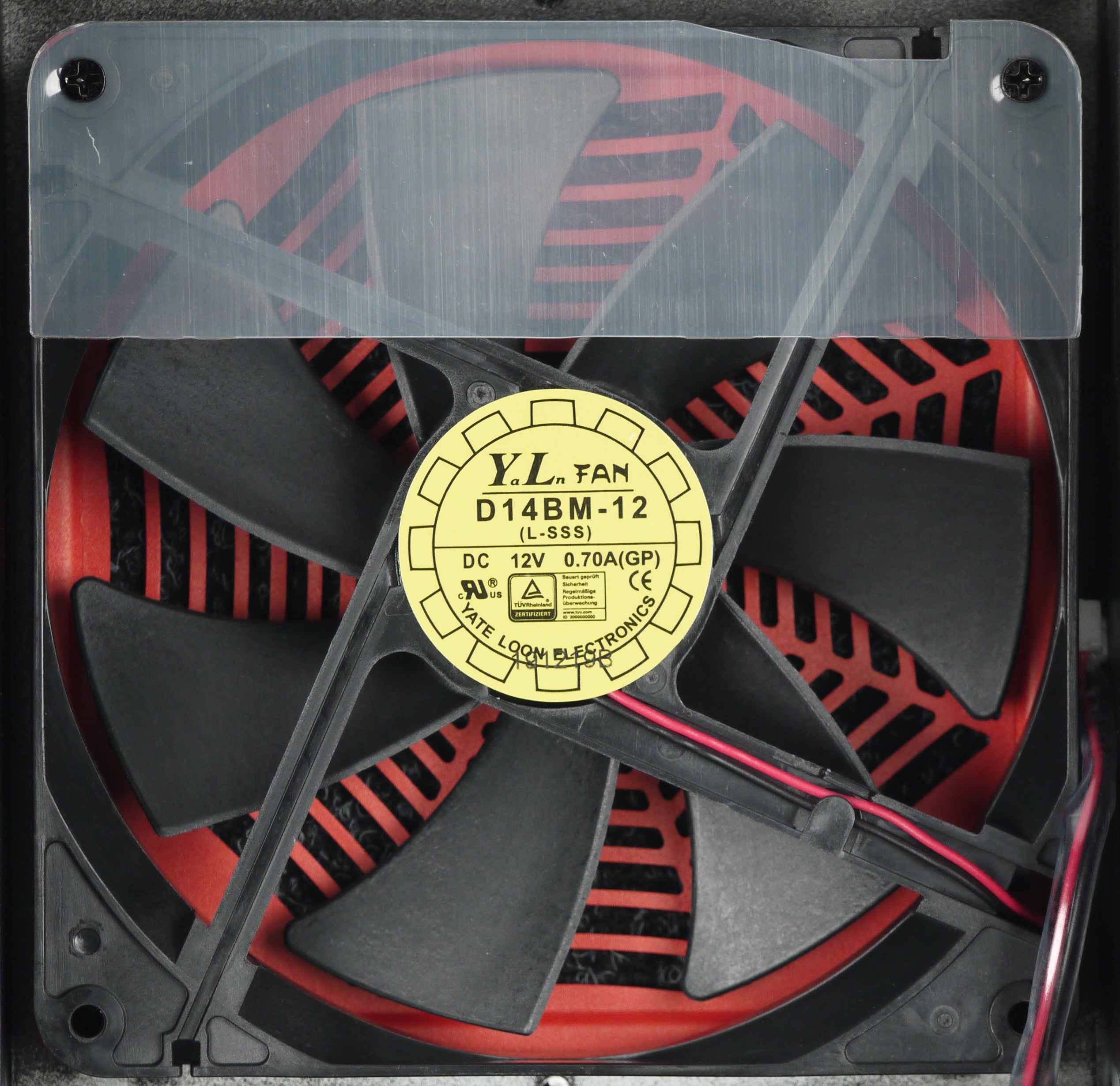В блоке питания установлен вентилятор D14BM-12 типоразмера 140 мм производства Yate Loon Electronics. Вентилятор основан на подшипнике качения и имеет скорость вращения 1400 оборотов в минуту, согласно данным производителя. Подключение двухпроводное через разъем.