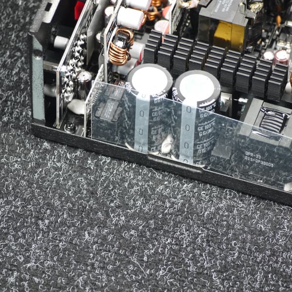 Также мы оцениваем уровень шума электроники блока питания, поскольку в некоторых случаях она является источником нежелательных призвуков. Данный этап тестирования осуществляется путем определения разницы между уровнем шума в нашей лаборатории с включенным блоком питания и с выключенным. В случае, если полученное значение находится в пределах 5 дБА, никаких отклонений в акустических свойствах БП нет. При разнице более 10 дБА, как правило, есть определенные дефекты, которые можно услышать с расстояния около полуметра. На данном этапе измерений микрофон шумомера располагается на расстоянии около 40 мм от верхней плоскости БП, так как на бо́льших расстояниях измерение шума электроники весьма затруднительно. Измерение производится в двух режимах: дежурном режиме (STB, или Stand by) и при работающем на нагрузку БП, но с принудительно остановленным вентилятором.