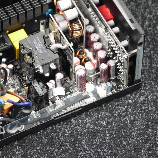 Конденсаторы в блоке питания имеют преимущественно японское происхождение. В основной массе это продукция под торговыми марками Nichicon и Nippon Chemi-Con. Установлено и большое количество полимерных конденсаторов.
