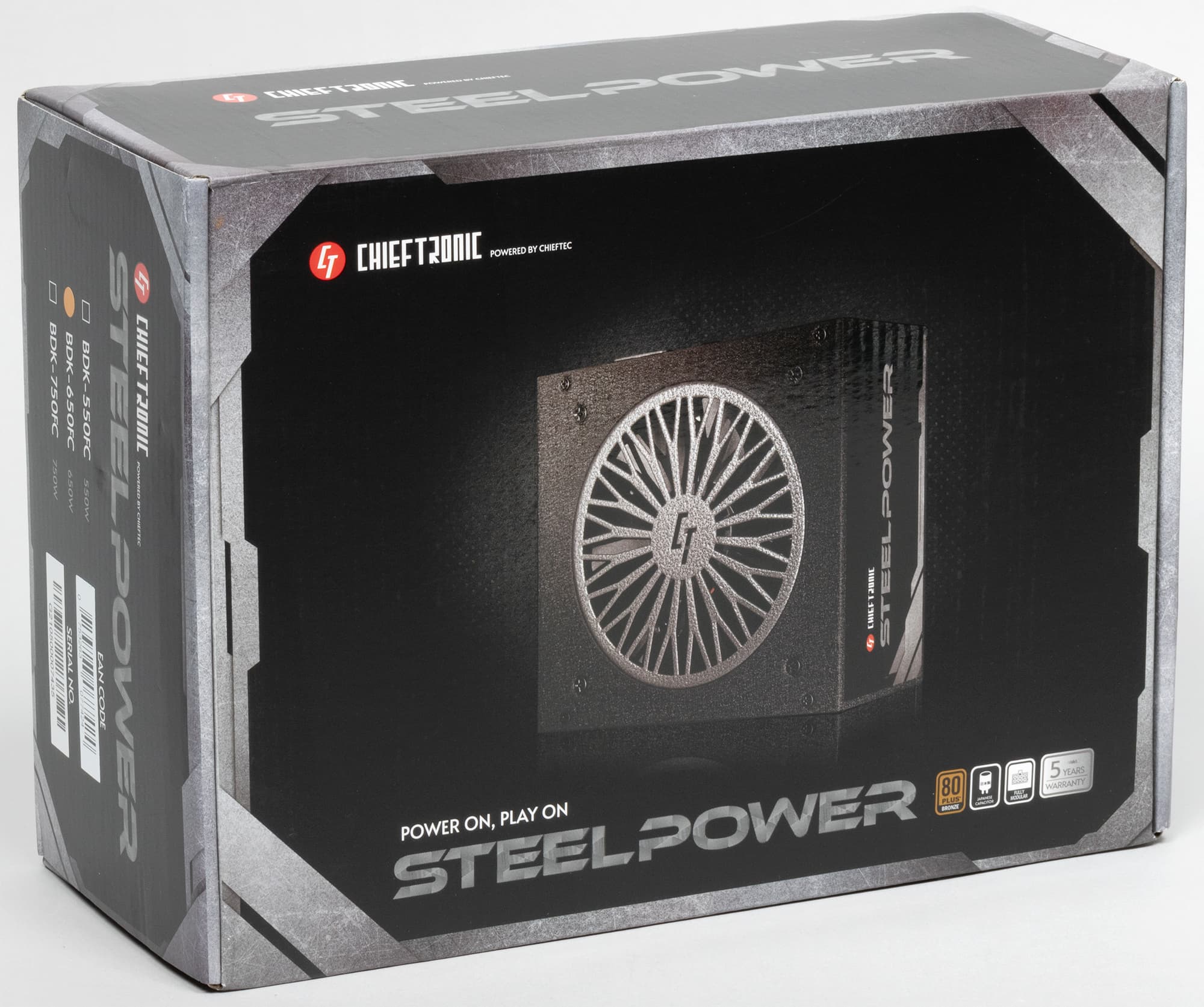 К нам в лабораторию поступил очередной представитель игровой линейки блоков питания Chieftronic. В данном случае это решение из самой бюджетной серии Steel Power, которая располагается ниже серии PowerUp, двух представителей которой мы рассматривали ранее. К Steel Power относятся три модели мощностью 550, 650 и 750 Вт. С учетом позиционирования данной серии, самой популярной, скорее всего, будет младшая модель, потому что, как показывает практика, отличия в потребительских качествах у моделей одной серии номиналов 550 и 650 Вт часто исчезающе малы, а стоимость может отличаться вполне ощутимо.