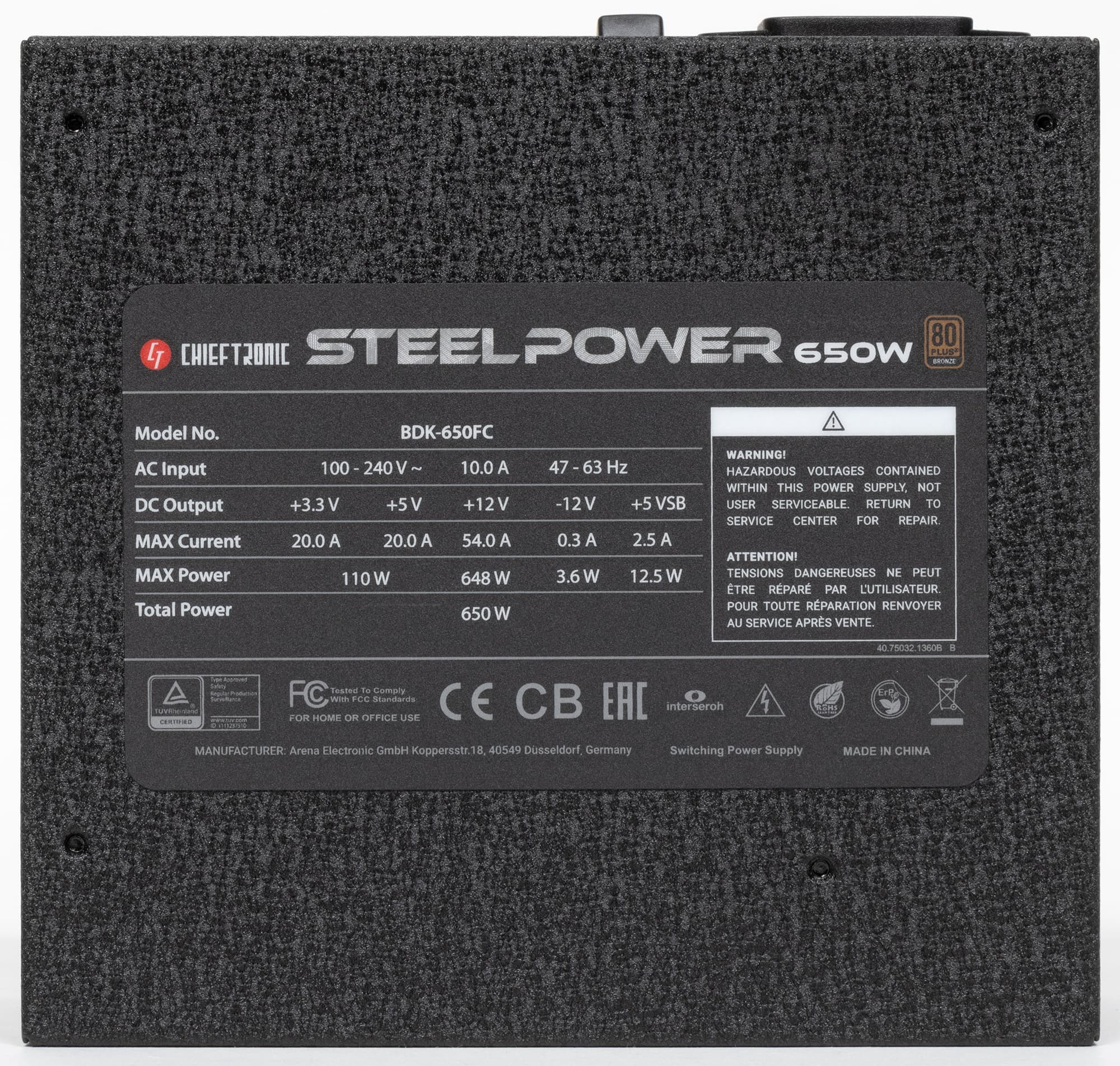 Потребительские качества Chieftronic Steel Power 650W (BDK-650FC) находятся на хорошем уровне. Нагрузочная способность канала +12VDC высокая, что позволяет использовать данный БП в достаточно мощных системах с одной производительной видеокартой.