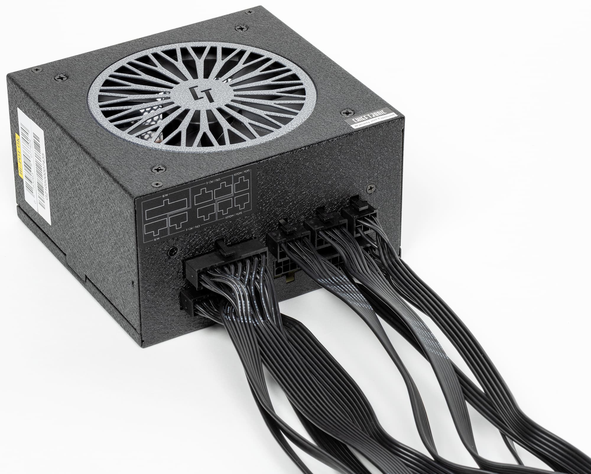 Конструкция блока питания вполне соответствует современным тенденциям: активный корректор коэффициента мощности, синхронный выпрямитель для канала +12VDC, независимые импульсные преобразователи постоянного тока для линий +3.3VDC и +5VDC. Основан блок питания на бюджетной, но вполне современной платформе CWT.