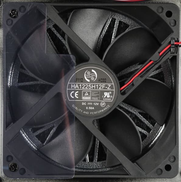 В блоке питания установлен вентилятор Honghua HA1225H12F-Z типоразмера 120 мм (2200 об/мин), подключение двухпроводное, через разъем. Вентилятор основан на гидродинамическом подшипнике, что подразумевает долгий срок его службы.