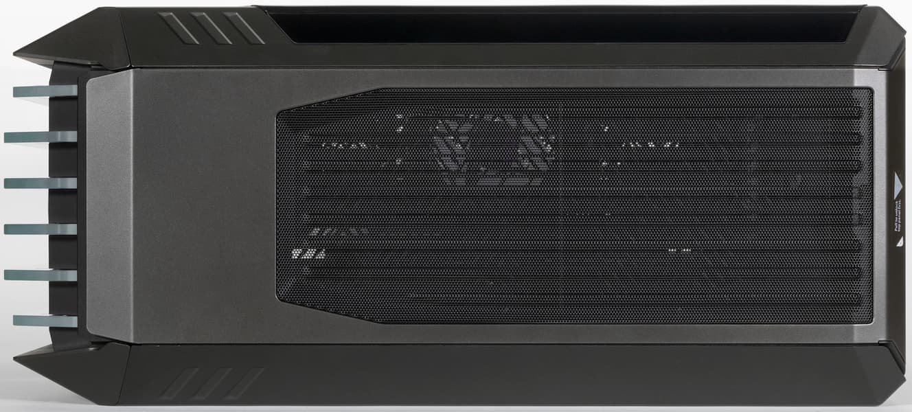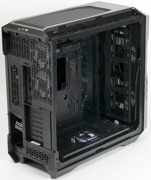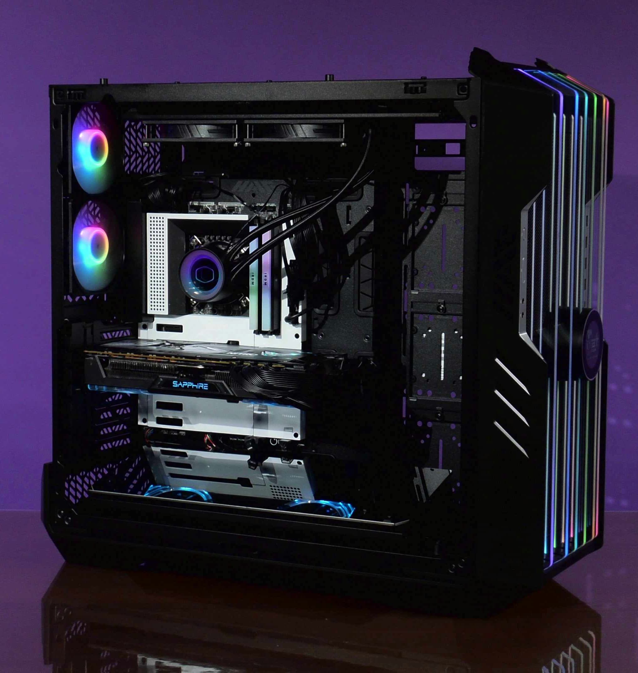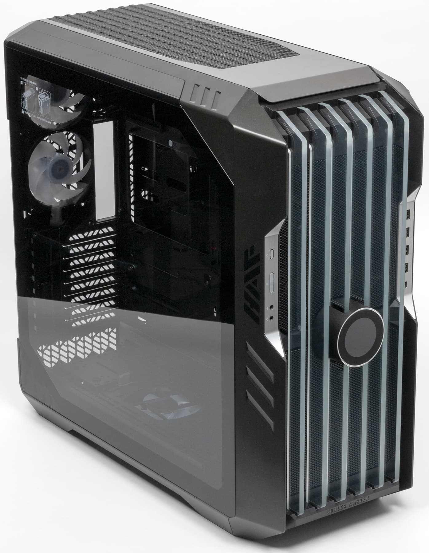 Cooler Master HAF 700 Evo представляет собой оригинальный продукт не только с точки зрения дизайна, но и с точки зрения конструкции отдельных элементов, а также широких возможностей по размещению компонентов системного блока, в том числе различных по конфигурации систем жидкостного или воздушного охлаждения. Можно установить внутрь большое количество накопителей, в том числе типоразмера 3,5 дюйма. Отдельно стоит отметить систему подсветки с программным управлением, наличие графического индикатора с интересными функциями, большое количество портов на передней панели.
