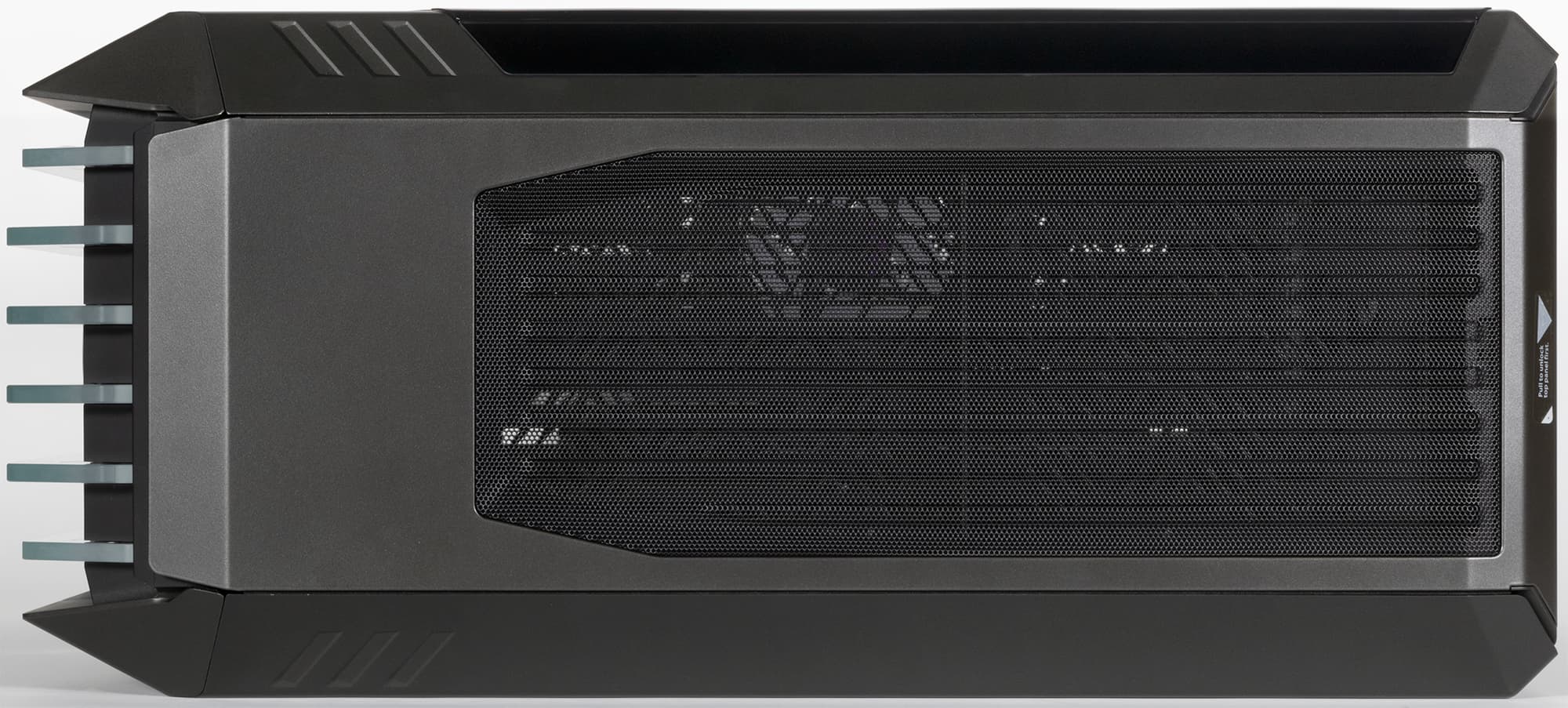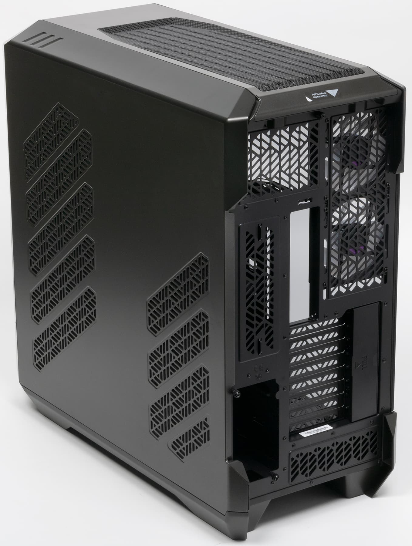 Выглядит корпус весьма объемным, что неудивительно при таких габаритах. Переносить его в коробке одному человеку крайне затруднительно. После извлечения из коробки можно снять внешние панели и переносить корпус по частям, так как он очень тяжелый. К тому же, у самого корпуса нет никаких ручек или выступов для захвата, поэтому приходится брать его в обнимку и транспортировать таким образом. С ностальгией вспоминается корпус Cooler Master Storm Trooper, у которого была очень удобная ручка для переноски. Впрочем, в данном случае более уместным выглядел бы набор колесиков в комплекте: все-таки перемещать системный блок таких габаритов и массой более 30 кг — это непростая задача.
