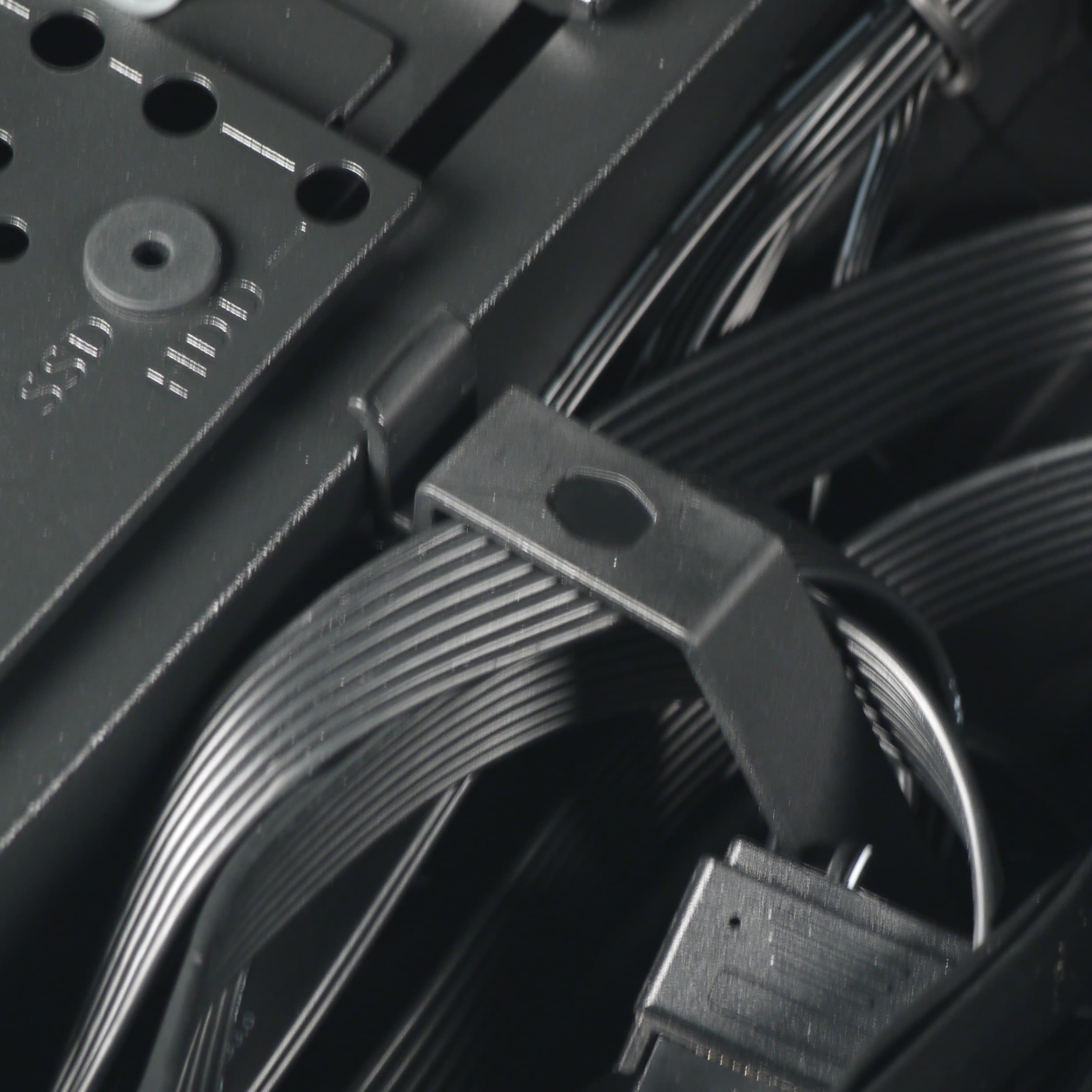 - два вентилятора SickleFlow Performance Edition PWM типоразмера 200 мм (1000 об/мин) расположены на передней панели, они имеют по одному стандартному четырехконтактному разъему с возможностью подключения к системной плате с управлением ШИМ