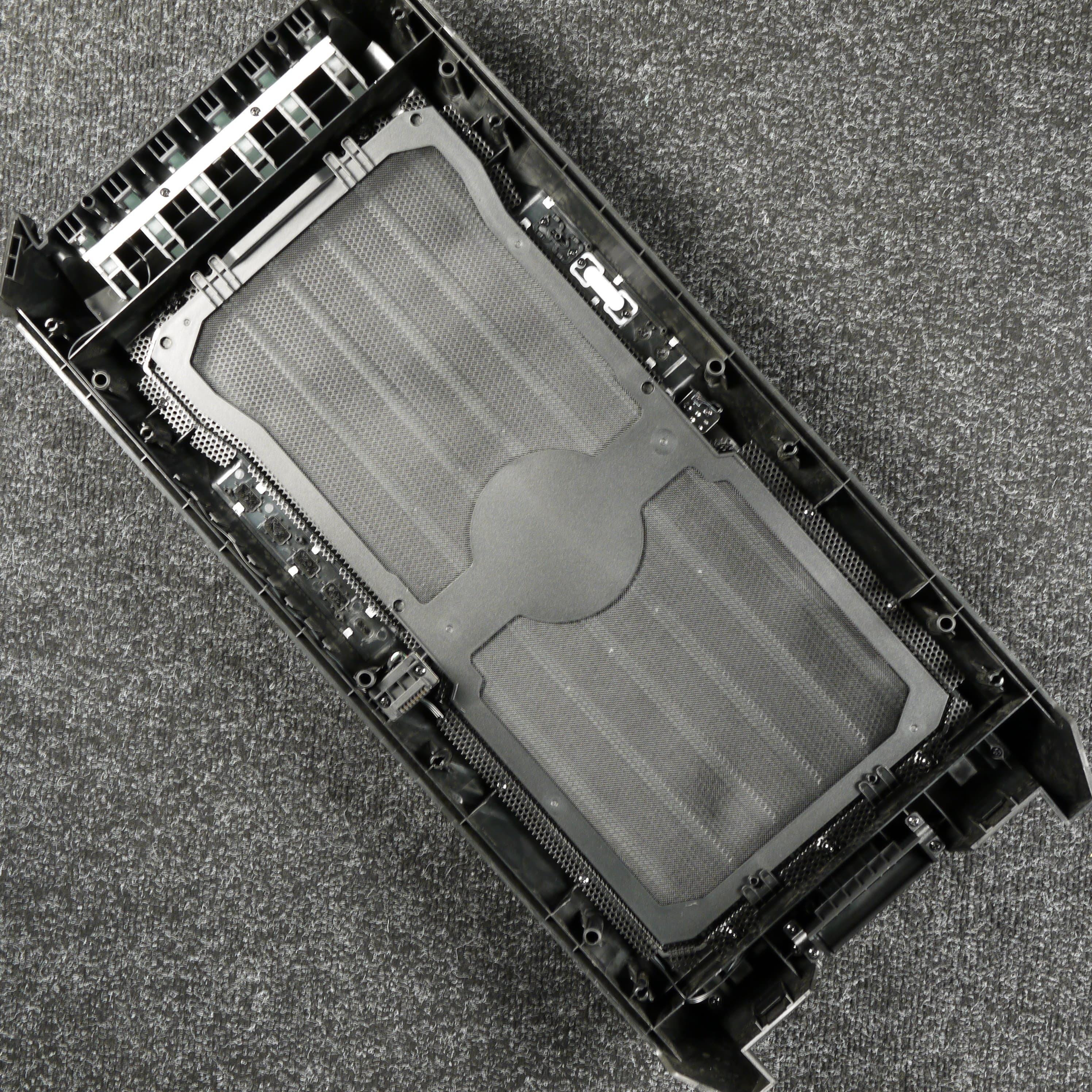 Передняя панель имеет составную конструкцию, выполнена она из пластика. В панели имеется встроенный блок светодиодов, который подключается через контактную группу. Снизу панели имеется специальный блокиратор, который нажимается рукой для демонтажа.