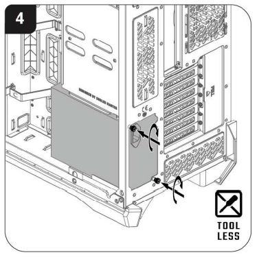 БП устанавливается с правой стороны и фиксируется при помощи четырех винтов, два из которых предустановлены (используются невыпадающие винты с противосъемной нарезкой).
