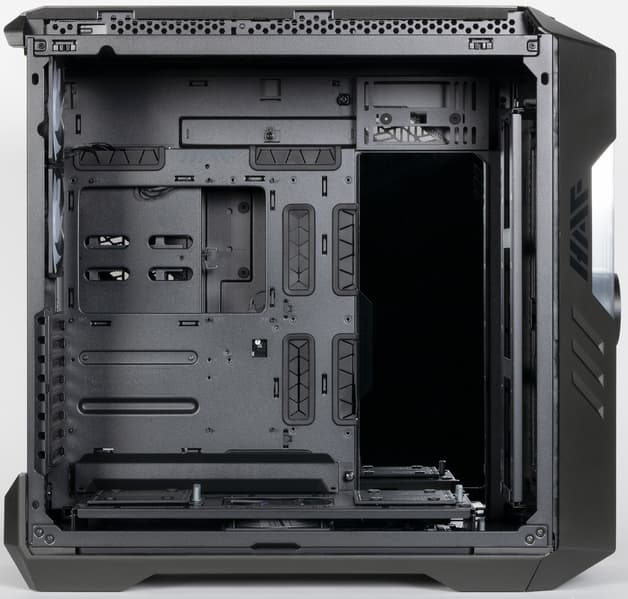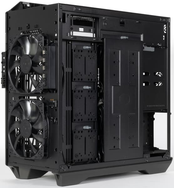 На основании для системной платы со стороны правой стенки также имеются места для установки элементов системы охлаждения шириной 120 или 140 мм и длиной до 480 мм, которые могут оказаться актуальными в случае использования в корпусе большого количества радиаторов.