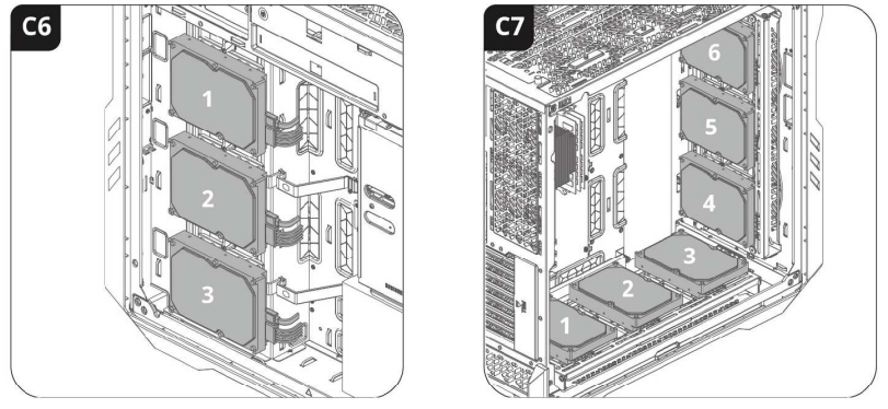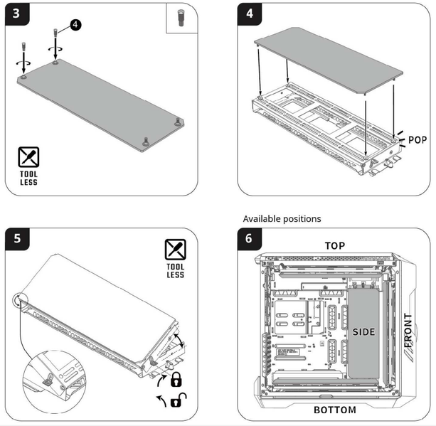 На каждую пластину можно установить один накопитель типоразмера 2,5 или 3,5 дюйма. Также на данные пластины можно установить помпу СЖО на дискретных компонентах.