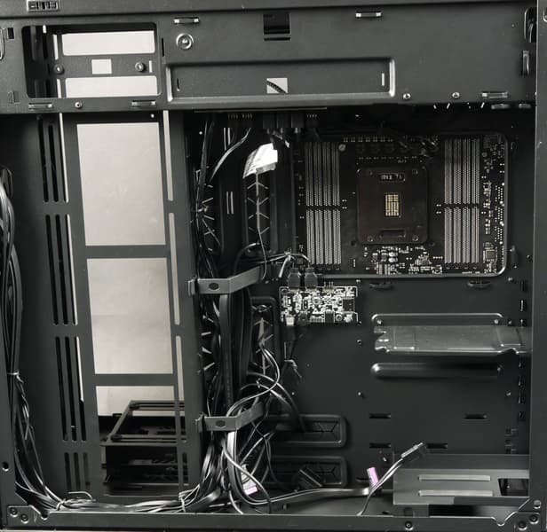 В целом система в данном корпусе собирается довольно удобно и без особых акробатических этюдов, но сборка требует времени, которое пропорционально количеству устанавливаемого оборудования. При использовании типовых компонентов всё можно осуществить очень быстро, а если устанавливать, к примеру, СЖО на дискретных компонентах, то времени и усилий по понятным причинам потребуется заметно больше.