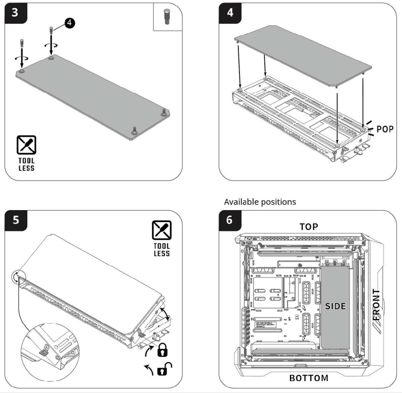Частично установка элементов системы охлаждения реализована посредством монтажных рамок. В комплекте есть две идентичные рамки, которые можно снять или переставить.