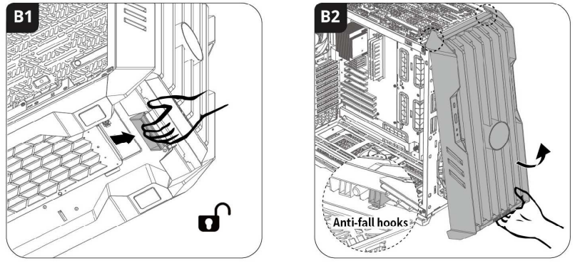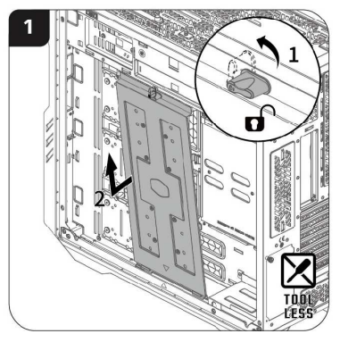 Удобно, что она быстросъемная за счет применения поворотного фиксатора. На этой панели также имеются места для накопителей.