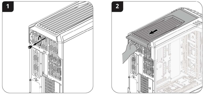 Первоначально нужно снять верхнюю панель, зафиксированную при помощи одного винта, после выкручивания которого панель нужно сдвинуть назад.