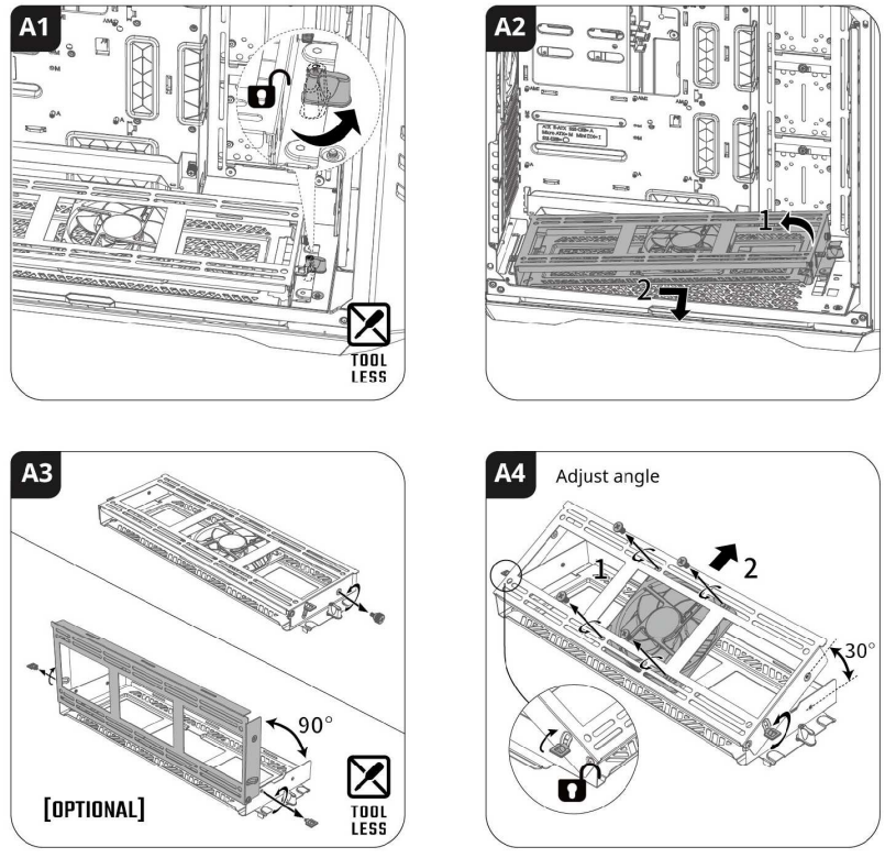 Каждая рамка поддерживает устройства охлаждения размером до 420 мм, причем ее положение можно регулировать, наклоняя ее нужным образом.
