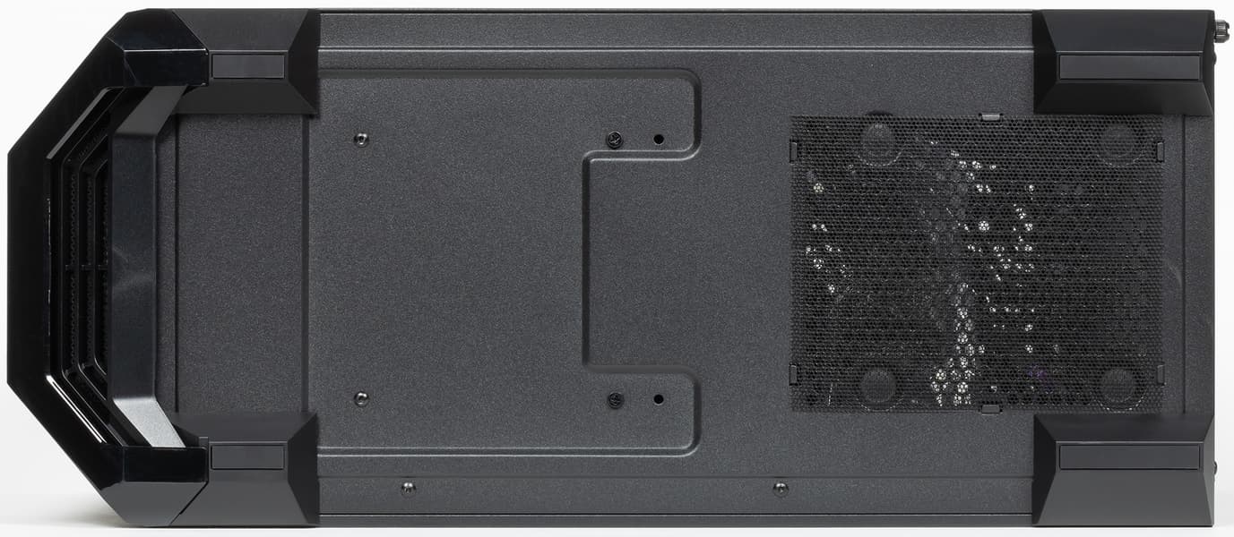 Корпус представляет собой решение башенного типа с вертикально размещаемой платой формата E-ATX (шириной до 272 мм) или ATX (и менее габаритной) и горизонтальным расположением блока питания снизу на дне корпуса.