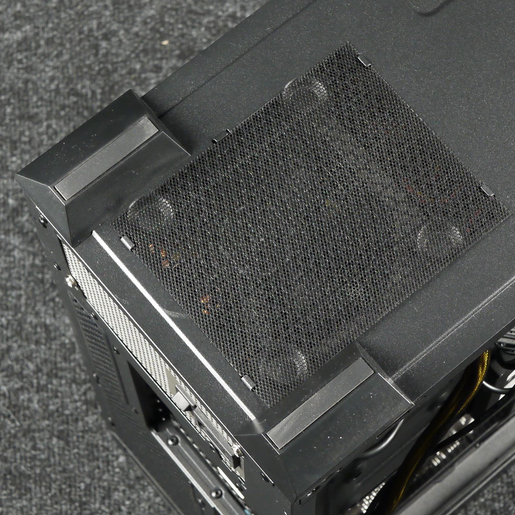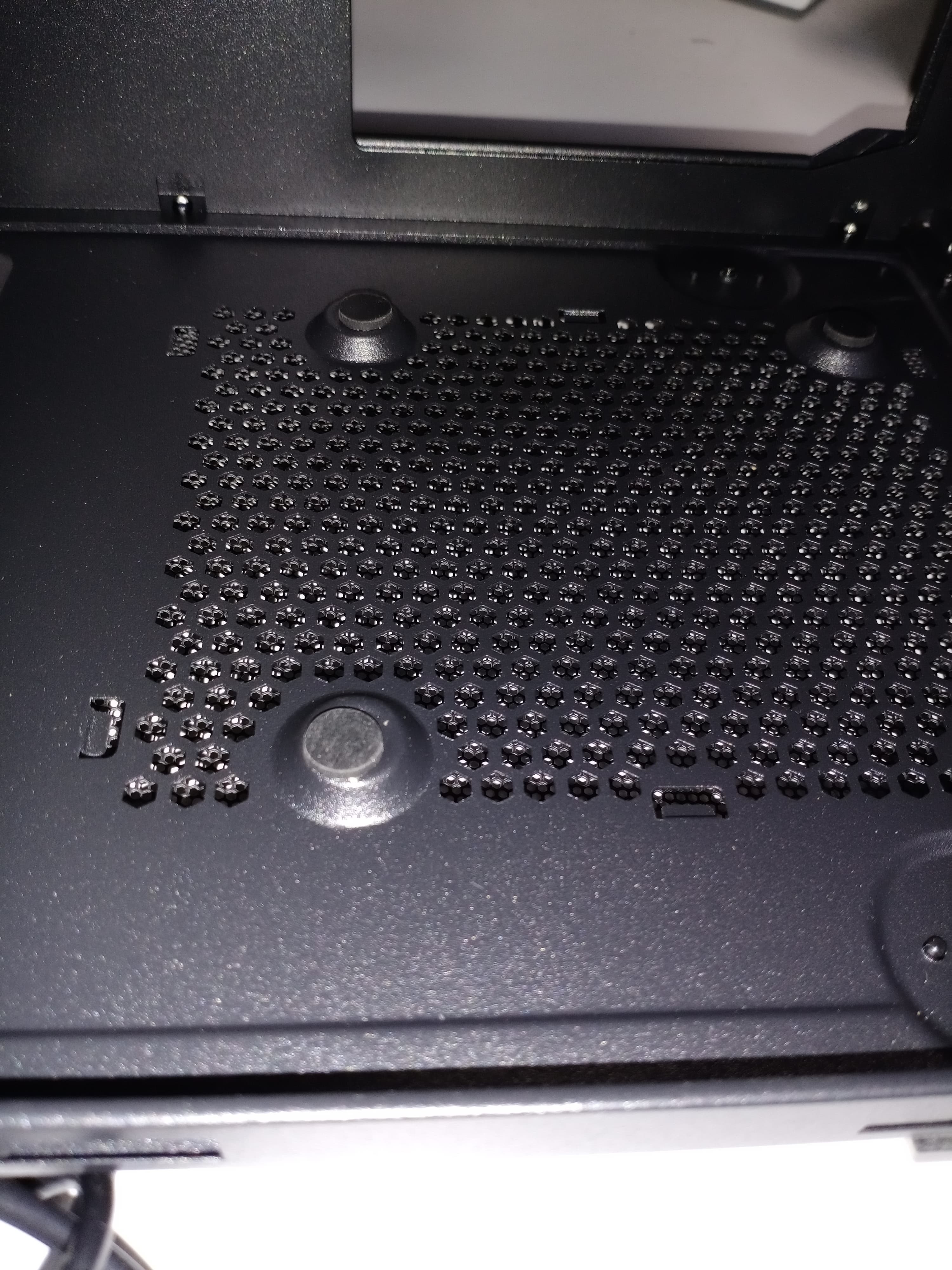 Фильтр для верхней стенки удобнее всего снимается и ставится на место благодаря магнитной окантовке, однако выполнен он из достаточно крупной пластиковой сетки, а потому бо́льшая часть мелких пылинок просочится сквозь него в корпус. С другой стороны, он отлично поможет от падения внутрь корпуса монет, ключей, каких-либо мелких предметов, да и от части пыли тоже спасет.