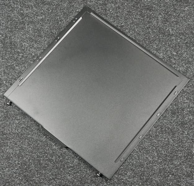 Масса корпуса составляет 7,64 кг, из них 2,09 кг весит стеклянная стенка и около 1,04 кг — стальная. То есть если бы обе стенки корпуса были стальными, он весил бы 6,59 кг. Жесткость конструкции не самая высокая, но вполне достойная.