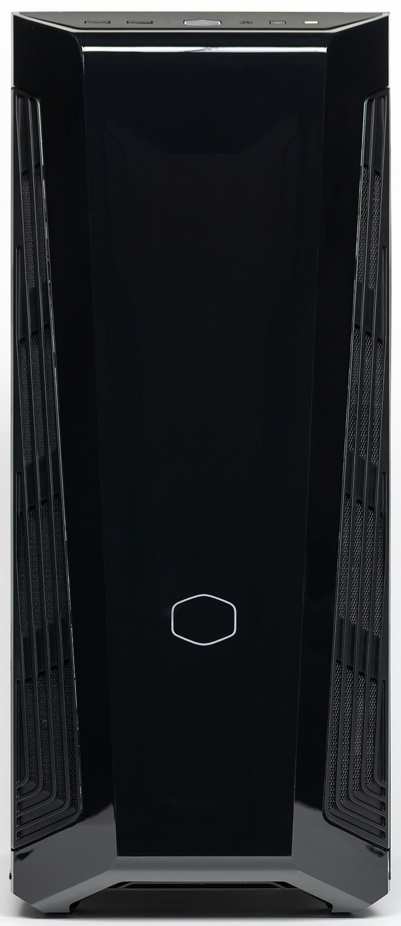 Cooler Master MasterBox 540 интересен в первую очередь благодаря оригинальному дизайну передней панели, особенно с работающей подсветкой, хотя и с выключенной подсветкой он выглядит довольно симпатично. Собирать и модернизировать систему в корпусе достаточно удобно благодаря быстросъемной левой панели, правая панель в этом плане заметно менее удобна. Также стоит отметить возможность снять верхнюю панель — кому-то это будет актуально. Внутренний объем вполне позволяет использовать современные высокопроизводительные компоненты.